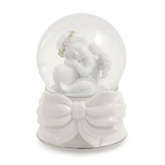 Palla Acquaneve Con Angelo Base Porcellana Carillon Hervit