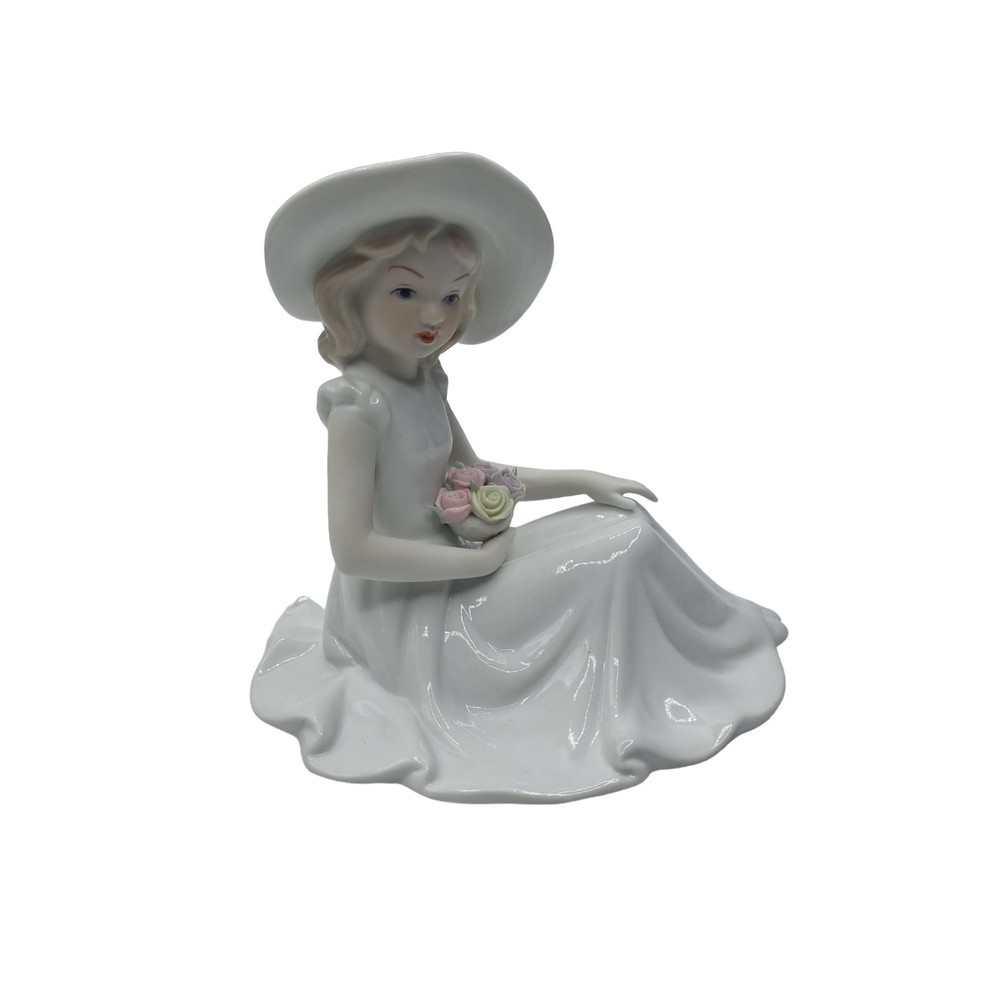 Bimba Seduta Con Cappello Porcellana
