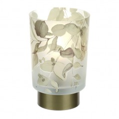 Lampada in vetro Hervit della nuova collezione Botanic con decoro floreale giallo,eleganti rami in colori pastello.Grazie all'alimentazione a batteria viene eliminato l'intralcio del filo, la satinatura ne elimina la trasparenza diffondendo così una luce soffusa mai invadente.Inclusa di lampadina.
