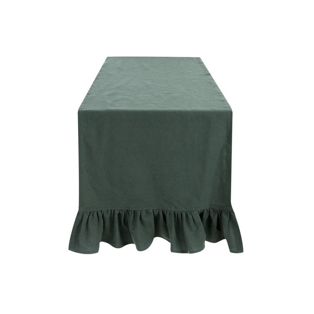 Runner con 2 gale verde scuro realizzato in cotone da Blanc MariClò collezione Frill.