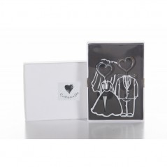 Set composto da tappo e cavatappo di Cuorematto in acciaio con scatola regalo viva gli sposi.