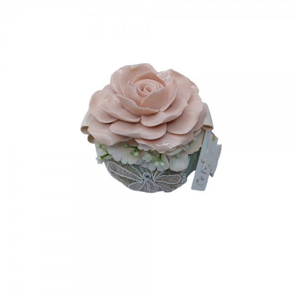 Puff Lino Verde Con Rosa Capodimonte Rosa Fiori Di Lena