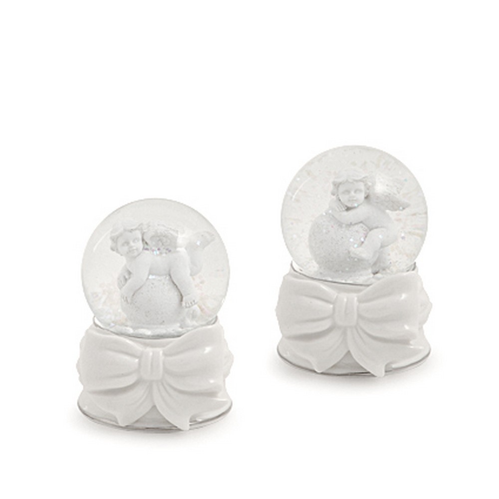 Palla di Neve Hervit con angioletto e base in porcellana con fiocco, angelo assortito. Il prezzo equivale al singolo articolo in caso di preferenza specificare l'articolo.