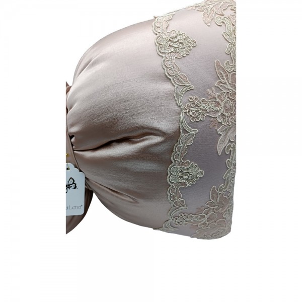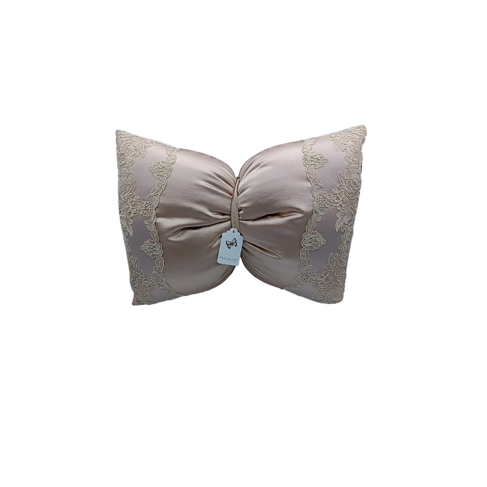 Cuscino Fiocco Rosa Antico con Pizzo Fiori Di Lena