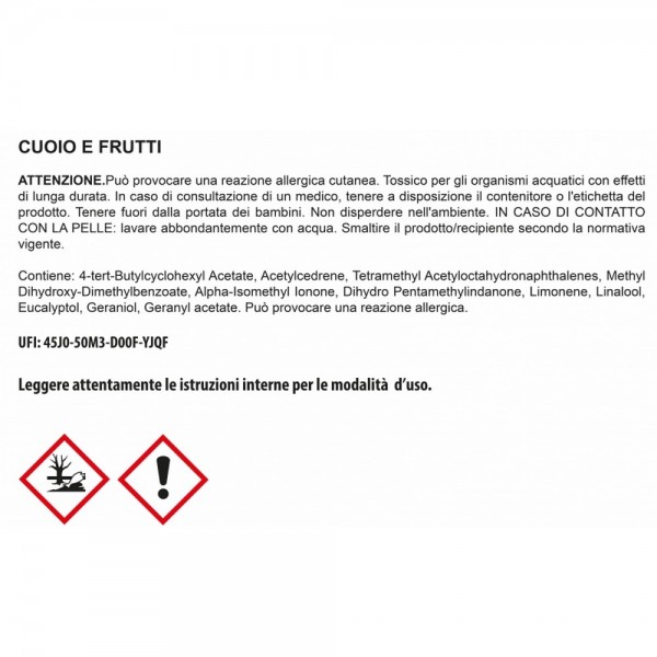 CUOIO E FRUTTI Fragranza intensa, calda e legnosa miscelata con cuoio e zafferano unita a profumi fruttati come lampone, mirtillo e pera, arricchita da fiori di tagete.