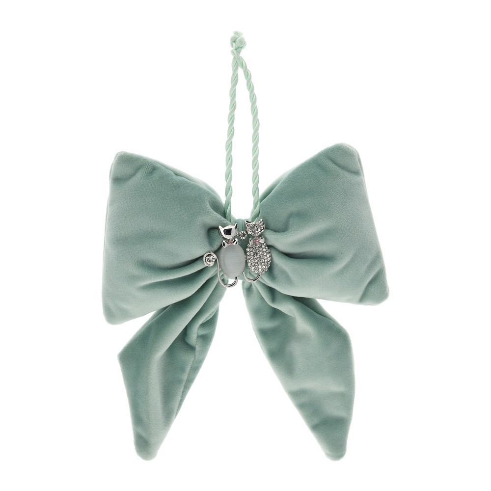 Fiocco Velluto Verde con Spilla Gattini Hervit