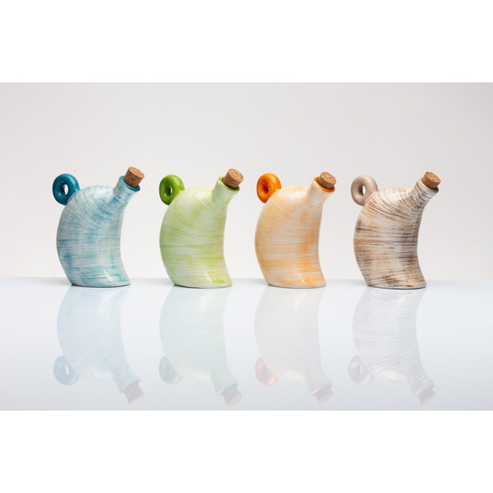 Oliera Dolphin di Gli Amici di Cuore Matto in ceramica dipinta a mano, di colore marrone con tappo in sughero e con flaconcino di 50ml di olio BIO del frantoio Rusci gno di Matera.Scopri tutti gli altri colori.