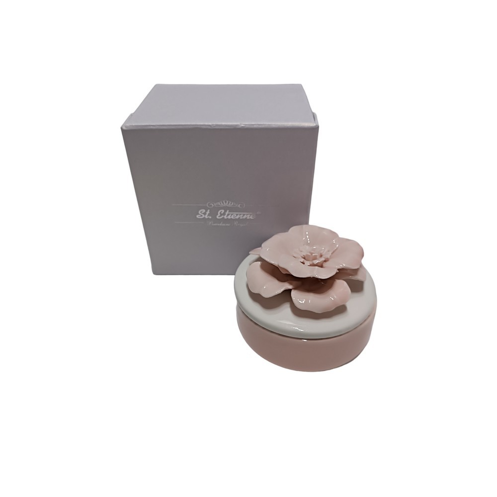 Scatola Porcellana con Candela e Fiore Rosa St.Etienne