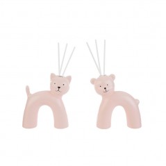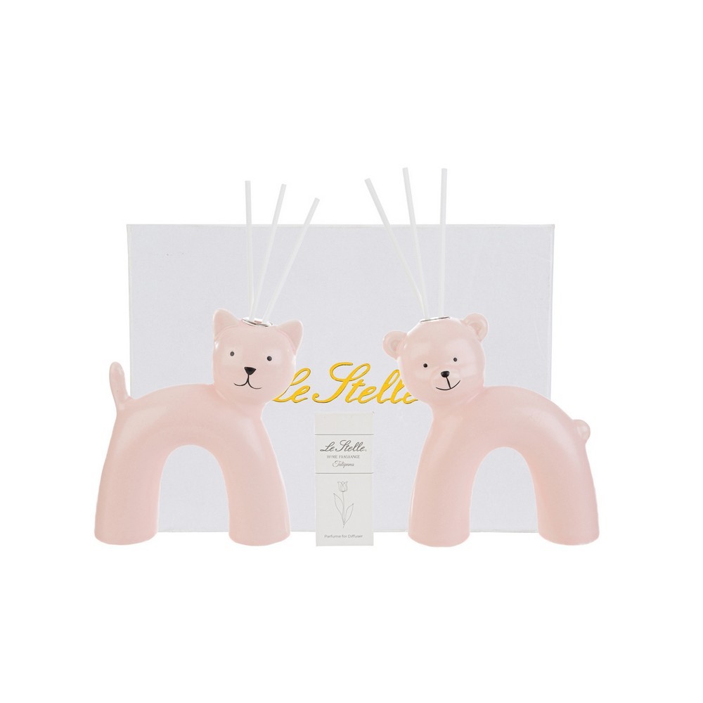 Profumatore animaletti in posizione assortita in porcellana di colore rosa, in caso di preferenza specificare l'articolo, il prezzo equivale al singolo articolo incluso di scatola regalo.