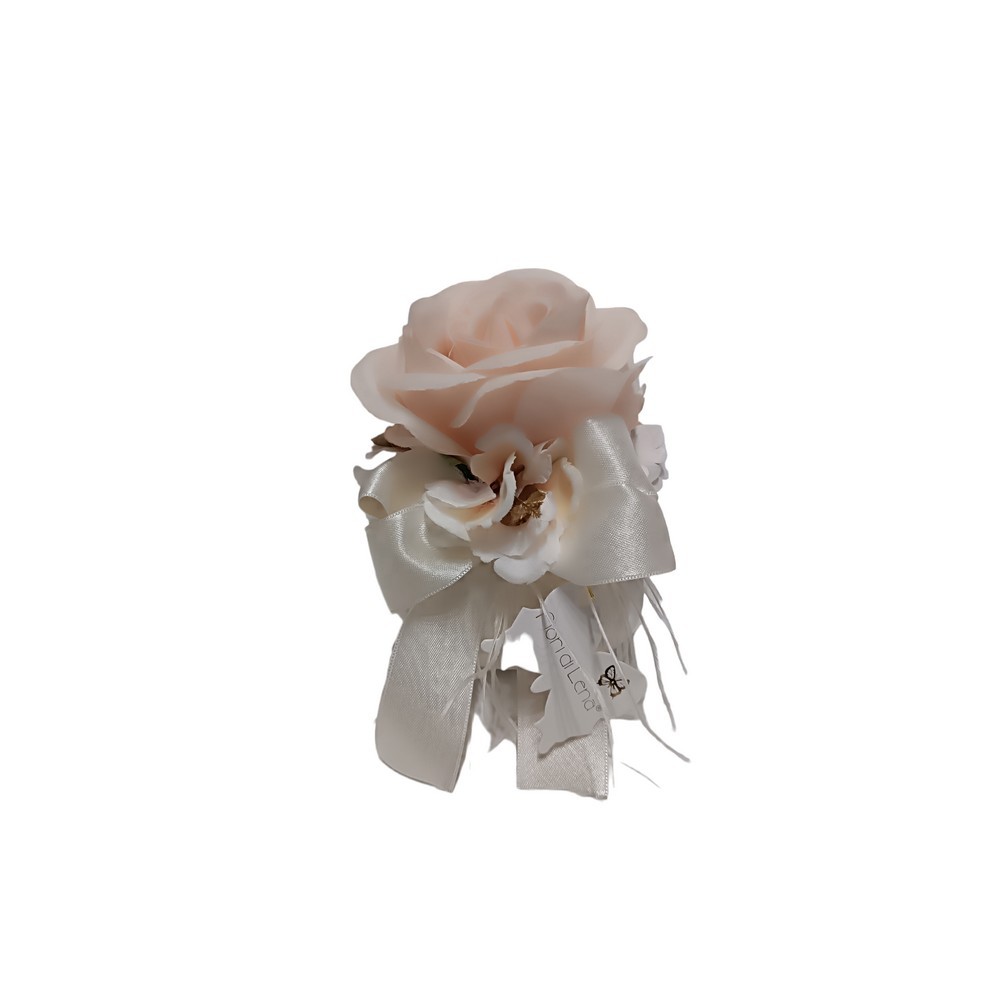 Puff Seta Avorio con Rosa Rosa Fiori Di Lena