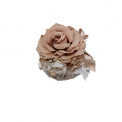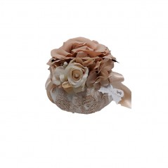 Puff Seta AvorioCon Pizzo E Rosa Pesco Fiori Di Lena