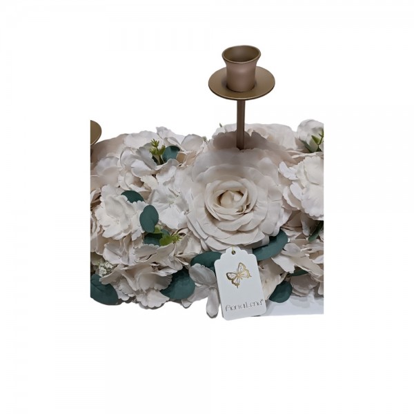 Candeliere Tre Fiamme con Rose e Ortensie Avorio Fiori Di Lena