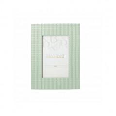 Portafoto lingotto Brandani prende il nome dal suo peculiare decoro: perfetto per potenziare le foto contenute, grazie alla sua forma rettangolare con pratico piedistallo potrà essere poggiato sia in posizione verticale che in orizzontale.Realizzato in poliresina di colore verde acqua.