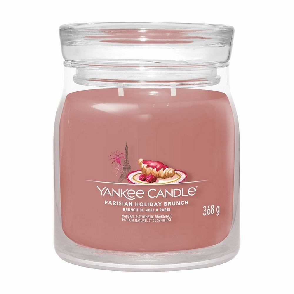 Candela media Yankee Candle Parisian Holiday Brunch, è una fragranza Fruttata.Fatti trasportare in una pasticceria da sogno a Parigi, con accenti che richiamano i croissant burrosi, la confettura di lamponi, i fichi e lo zucchero di canna.La candela a giara media a due stoppini e un mix di altissima qualità di cera di soia il quale fornisce una stupenda fragranza a lunga durata e una meravigliosa atmosfera.