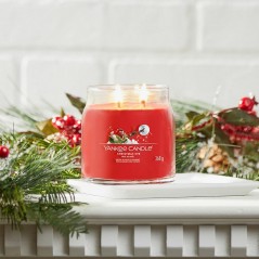 Candela media Yankee Candle Christmas Eve, è una fragranza Dolce e Speziata.I tradizionali profumi delle feste: note profumate che richiamano il caminetto acceso, le prugne zuccherate, e la frutta candita.La candela a giara media a due stoppini e un mix di altissima qualità di cera di soia il quale fornisce una stupenda fragranza a lunga durata e una meravigliosa atmosfera.