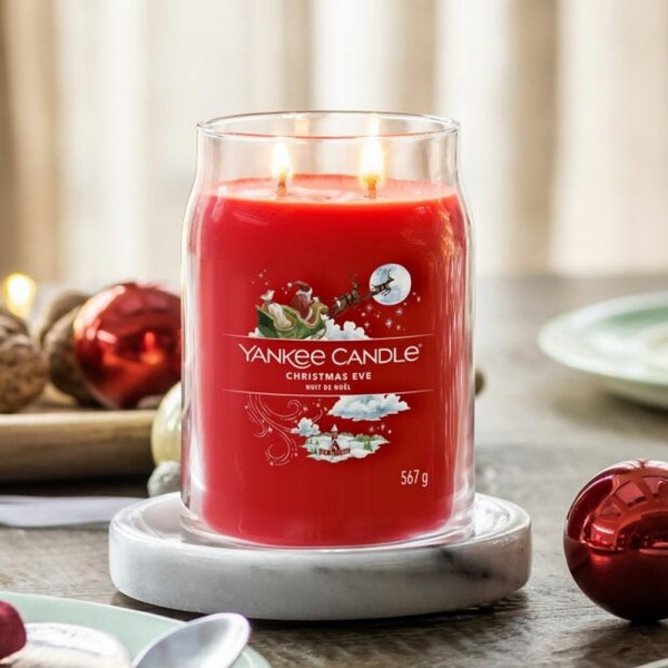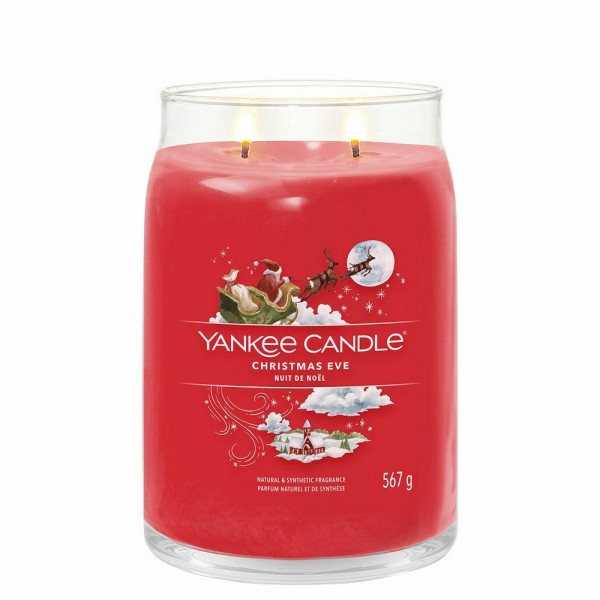 Candela grande Yankee Candle Christmas Eve,è una fragranza Dolce e Speziata.I tradizionali profumi delle feste: note profumate che richiamano il caminetto acceso, le prugne zuccherate, e la frutta candita.Questa è la più grande candela nella gamma realizzata con due stoppini e un mix di altissima qualità di cera di soia il quale fornisce una stupenda fragranza a lunga durata e una meravigliosa atmosfera.