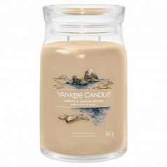 Candela grande Yankee Candle Amber & Sandalwood, è una fragranza Dolce e Speziata.Una spiaggia isolata vi accoglie con la sua sabbia riscaldata dal sole e i profumi rilassanti che evocano il legno trasportato dal mare, il cardamomo e l'ambra.Questa è la più grande candela nella gamma realizzata con due stoppini e un mix di altissima qualità di cera di soia il quale fornisce una stupenda fragranza a lunga durata e una meravigliosa atmosfera.