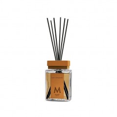 La nuova Linea Bastoncino di Muhà rappresenta l'eccellenza del design italiano, combinando estetica e funzionalità. La bottiglia in vetro, impreziosita da un collo artigianale in zama, trasmette eleganza. I bastoncini in fibra diffondono una fragranza raffinata, creando un'atmosfera lussuosa. L'etichetta in ecopelle aggiunge un tocco di pregio e sostenibilità.