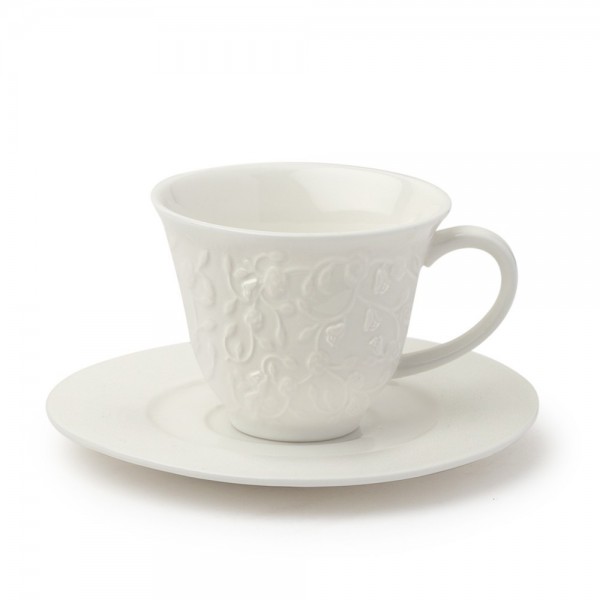 Set 2 pezzi tazzina caffè con piattino della collezione Ricordi di Brandani in new bone china, elegante, raffinato, il suo candido color bianco, con ordinate ed aggraziate decorazioni ai bordi, li rende perfetti da abbinare ad ogni tavola, esaltando con grazia e ricercatezza i più disparati living space.