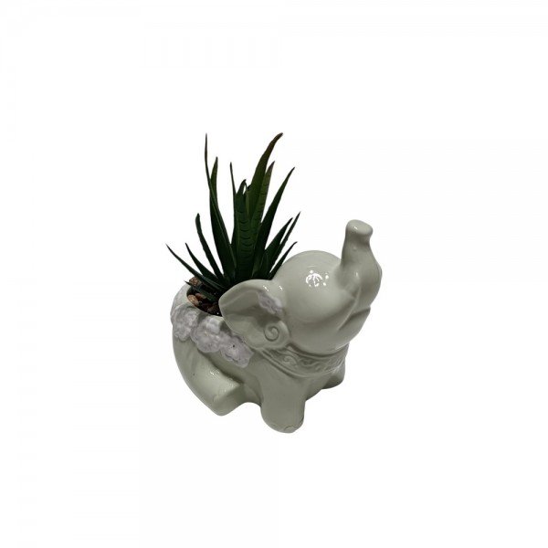 Elefante Verde Porcellana con Pianta Sintetica St.Etienne