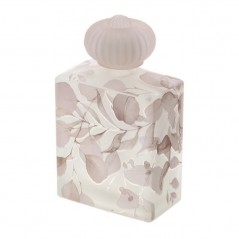 Bottiglia Botanic in vetro satinato Hervit con stampa elegante di foglie rosa cattura l'essenza della raffinatezza, combinando materiali di alta qualità con un'estetica moderna e armoniosa. Il tappo in vetro satinato completa il look, rendendola un elemento decorativo ideale per ogni ambiente.