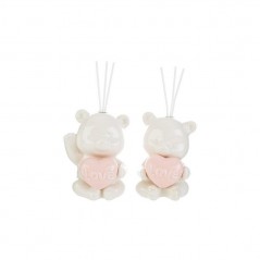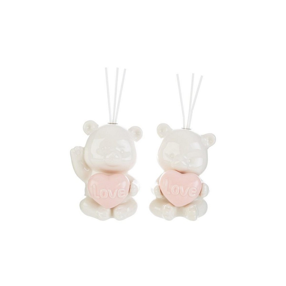 Orsetto profumatore in porcellana bianca in due posizioni assortite con cuore rosa. Incluso di bastoncini, profumo e scatola regalo. In caso di preferenza specificare l'articolo, il prezzo equivale al singolo articolo.