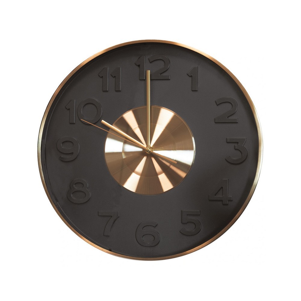 Caratterizzato da un design minimalista, questo orologio vintage è scandito da una potente bicromia nera ed oro, con numeri a rilievo.