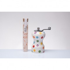 Macinapepe in porcellana di Gli amici di Cuorematto dipinto a mano e completo di fialetta con sale rosa, è ideale per aggiungere un tocco di eleganza artigianale a qualsiasi cucina. Realizzato con materiali di alta qualità, il macinasale dipinto non solo si distingue per il suo design artistico, ma anche per la sua praticità nell’uso quotidiano. Dimensione: h12 cm Ottima idea regalo e bomboniera