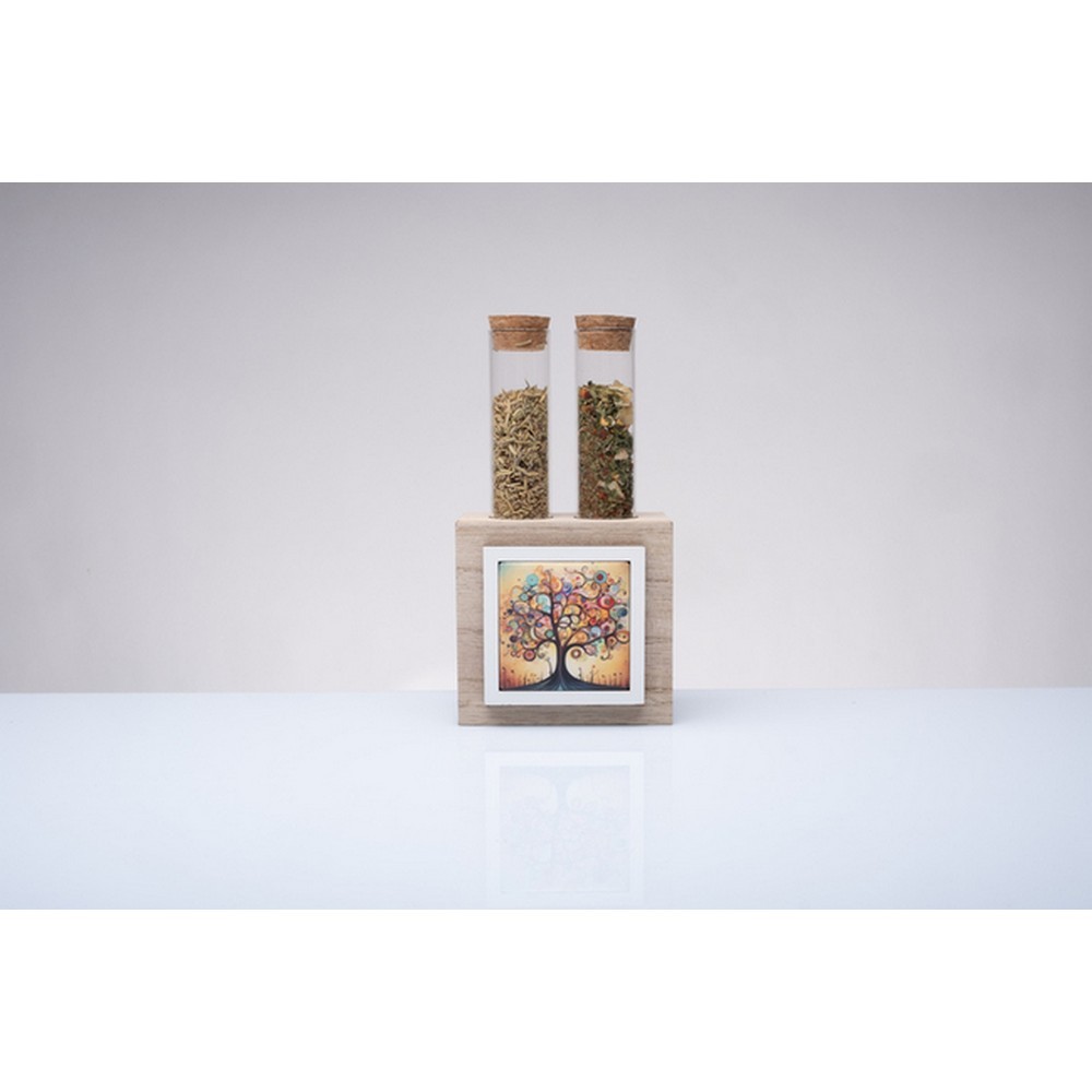 Portaspezie con Due Flaconi Vetro Spezie Albero Della Vita Cuorematto