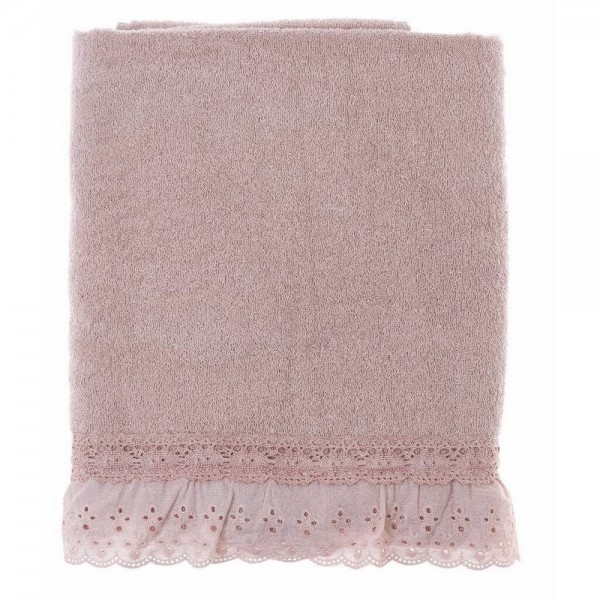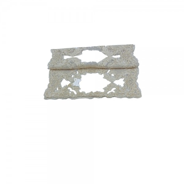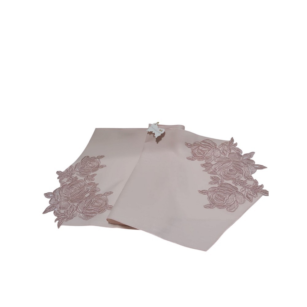 Centro Lino Rosa con Applicazione Pizzo Rose Fiori Di Lena