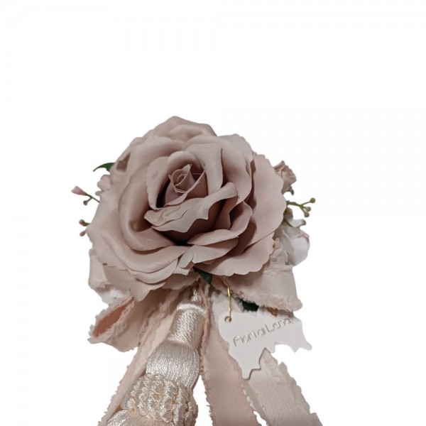 Nappa Avorio con Rosa Rosa e Nastri Lino Fiori Di Lena